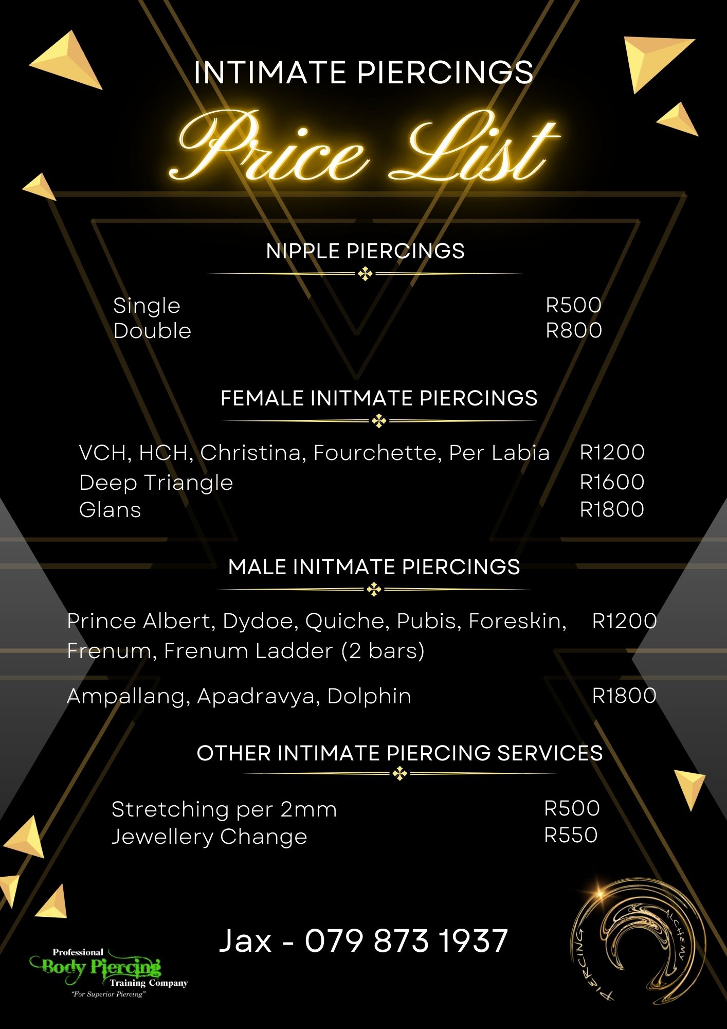 As a genital/intimate piercer, Jax believes each client should be comfortable and well-informed about the intended piercing prior to the piercing being done.